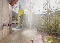 Diese Spiellandschaft wurde in der ehemaligen Abwasserinfrastruktur am Rhône-Ufer in Aproz erbaut. Für die fantasievolle Umsetzung erhielt sie den LILA Jury Award 2025. Herzlichen Glückwunsch an en-dehors! Aus einem stillgelegten Industriestandort wurde ein lebendiger Treffpunkt. bimbox Rutschenturm aus Schweizer Nadelholz. Wasserspielgeräte und Rutsche in Edelstahl.